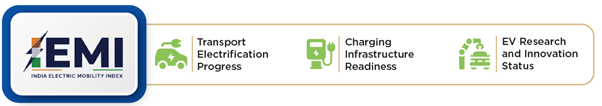 The India Electric Mobility Index (IEMI) tracks, evaluates and scores all Indian States and UTs out of 100 across 16 indicators under three-core themes: Transport Electrification Progress to capture demand-side adoption, Charging Infrastructure Readiness to track allied charging infrastructure development and EV Research and Innovation Status: Covers supply-side ecosystem R&D efforts.