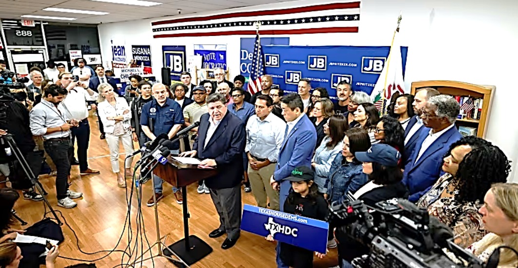 “We will not be complicit in the destruction of our own communities”, Texas House Democratic Caucus Chair Gene Wu said shortly after landing in Chicago.