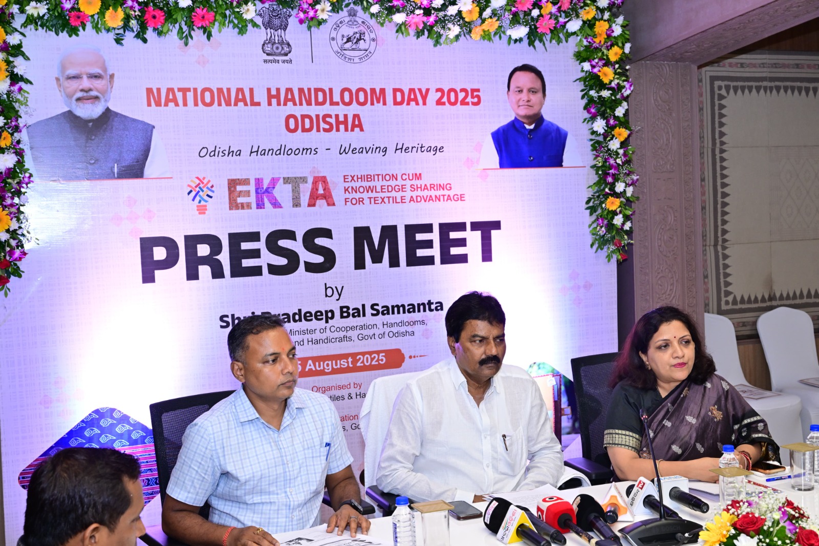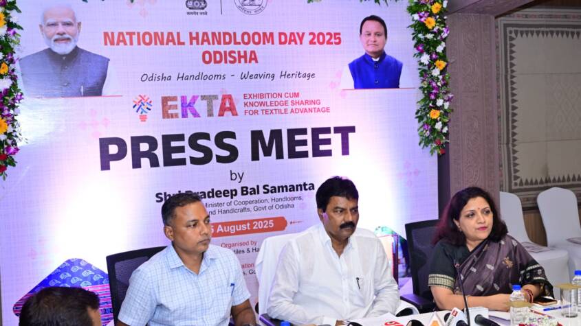 Bhubaneswar, Aug 2025 : “The weavers of Odisha are the soul of our cultural heritage. Our handloom is not just a piece of cloth, it is a legacy. Odisha handlooms weave heritage,” said Handlooms, Textiles, and Handicrafts Minister Pradeep Bal Samanta. He made this statement today at a press conference held at the State Guest House, organized in connection with the upcoming National Handloom Day 2025 and the ‘EKTA’ Celebration.