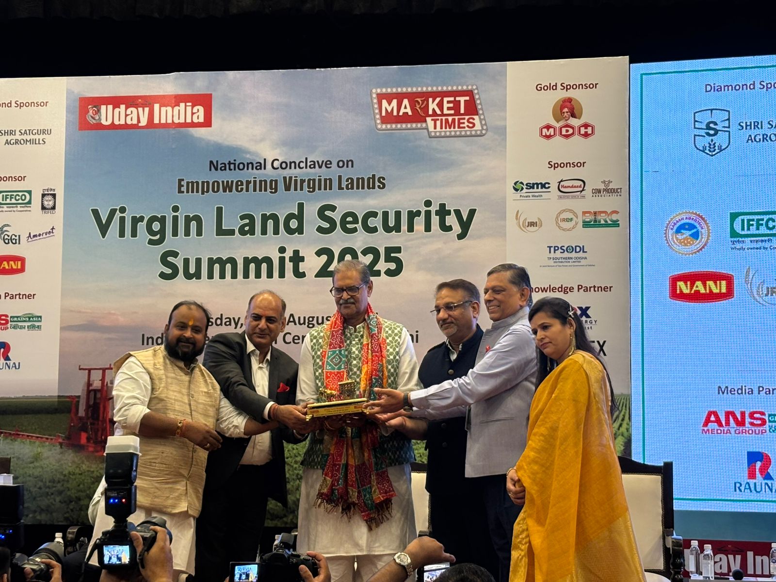 Bhubaneswar, Aug 2025 : Deputy Chief Minister and Minister of Agriculture & Farmers’ Empowerment, Energy Department Shri Kanak Vardhan Singh Deo participated in the Virgin Land Security Summit held at India International Centre, New Delhi sponsored by Uday India. India has over 60 million hectares of barren or underutilized land and around 20 million of which are ideal for organic farming. With global demand for organic products soaring, this is a golden opportunity for our farmers to lead the world in sustainable agriculture.