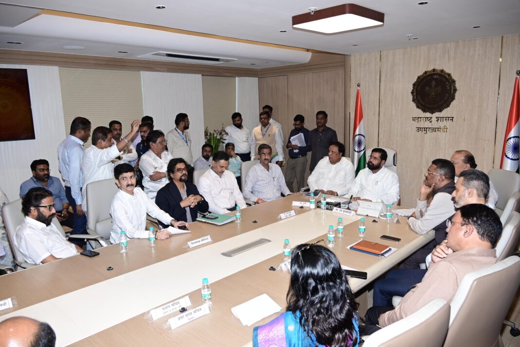 Present at the meeting were Cultural Affairs Minister Adv. Ashish Shelar, Medical Education Minister Hasan Mushrif, Tourism Minister Shambhuraj Desai, Transport Minister Pratap Sarnaik, Minister of State for Finance Adv. Ashish Jaiswal, Minister of State for Home Yogesh Kadam, Deputy CM’s Principal Secretary Navin Sona, Principal Secretary of Urban Development D. Govindaraj, Cultural Affairs Department Secretary Kiran Kulkarni, and other departmental officials. Also in attendance were Ameya Khopkar (MNS Chitrapat Sena), Sushant Shelar (Shiv Sena Chitrapat Sena), Babasaheb Patil (NCP Chitrapat Sena), Nanu Bhai Jaysinghani (Video Palace), Distributor Sameer Dixit, Meghraj Rajebhosale (Chairman, Chitrapat Mahamandal), and Sandeep Ghughe.