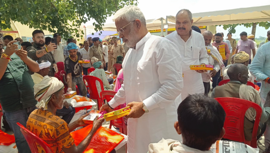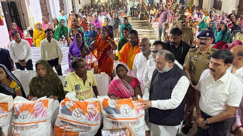 In Prayagraj, Minister Nand Gopal Gupta ‘Nandi’ visited Boys High School to distribute relief kits to flood-affected people. He stressed that extending all possible assistance to victims is the government’s top priority and assured them that the state government and administration are with them. He also directed officials to expedite compensation for damaged crops and houses, and instructed the Health Department to ensure the availability of medicines and antivenom at PHCs and CHCs.