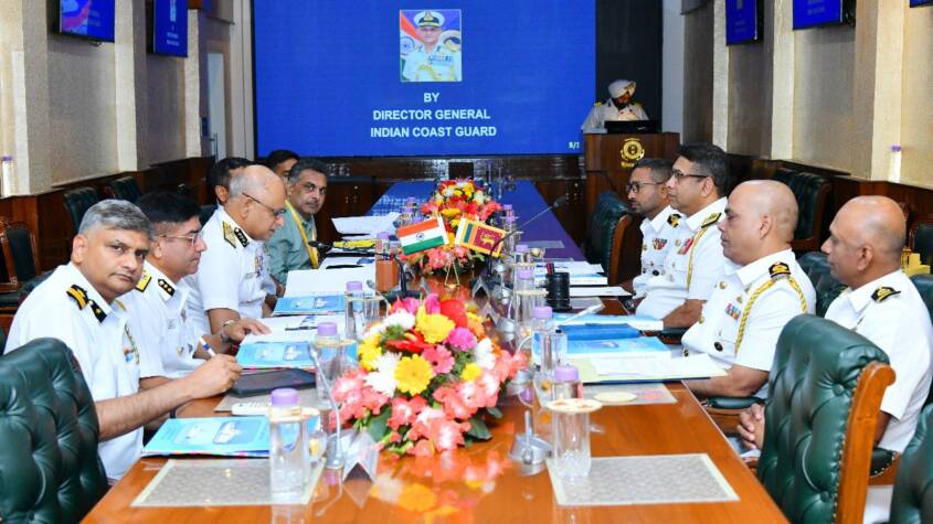 The 8th High-Level Meeting (HLM) between the Indian Coast Guard (ICG) and Sri Lanka Coast Guard (SLCG) was held in New Delhi on August 11, 2025, marking another milestone in the strong and enduring maritime partnership between the two countries. The discussions centered on strengthening cooperative engagements in the fields of marine pollution response, maritime search & rescue, and maritime law enforcement, along with enhanced capacity building & technical assistance initiatives.
