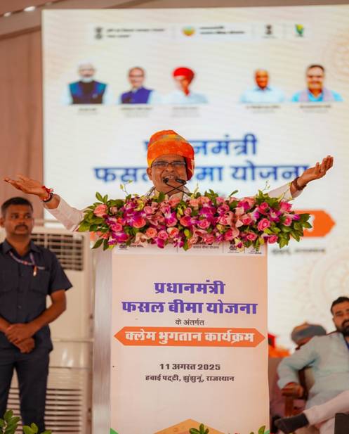Demonstrating the government’s commitment to farmer welfare, Union Minister for Agriculture & Farmers’ Welfare, and Rural Development Shri Shivraj Singh Chouhan today digitally transferred crop insurance payouts under the Pradhan Mantri Fasal Bima Yojana directly to farmers’ bank accounts from Jhunjhunu, Rajasthan. Around ₹3,900 crore was disbursed to the accounts of nearly 35 lakh farmers.