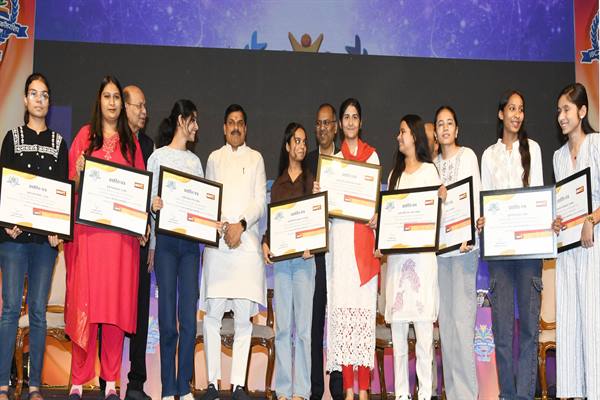 Miss Priyal Dwivedi of Government Higher Secondary School, Amarpatan, who secured the first position in the state in the Class 12 MP Board examinations, informed Chief Minister Dr. Mohan Yadav that she wished to pursue her higher studies at Vellore Institute of Technology (VIT) but was unable to do so due to financial constraints. In response, Chief Minister Dr. Yadav announced that the state government would make arrangements for her studies at VIT. In the programme, the Chief Minister honoured 66 girl students, awarding Rs 50 thousand and a certificate to each district topper. Priyal Dwivedi, the state topper, received a cheque for Rs 1 lakh, and her school was also presented with a cheque of Rs 1 lakh.