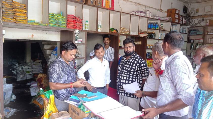 In Palari, SDM Deepak Nikunj and Fertilizer Inspector Suchin Kumar Verma inspected Kisan Seva Kendra and Krishi Seva Kendra. Due to the absence of a prescribed stock register and failure to submit monthly reports to the department, a show-cause notice was issued. In Bhatarpara, SDM Abhishek Gupta, Deputy Director Agriculture Deepak Kumar Nayak, and Fertilizer Inspector Avdhesh Upadhyay inspected Krishi Sopan and New Sahu Krishi Seva Kendra, where discrepancies were found between the physical stock and the displayed stock, resulting in notices being issued.