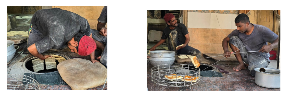 In the meantime, the tandoor is prepared which is placed near the store’s entrance. Blocks of coal are placed inside the tandoor and heated till iron hot. The naans are smeared with jaggery water to help them stick to the tandoor and are positioned inside the tandoor with the assistance of long iron rods.