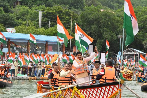Chief Minister Dr. Yadav was addressing the gathering after flagging off the ‘Jal Tiranga Yatra’ from Bhopal’s Boat Club at the Upper Lake under the ongoing ‘Har Ghar Tiranga’ Abhiyan in the state. He waved the green flag to start the ‘Jal Tiranga Yatra’ and released a large number of ‘Tricolour’ balloons into the sky. Water sports players, riding boats used in Asian and Olympic Games, carried the national flag with discipline and pride, advancing across the Upper Lake. The sky, water and land in the area turned ‘Tricolour’. A large number of