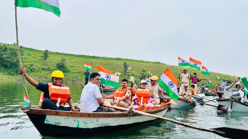 The most remarkable of all events was the boat rally at Peepalkhunt in Pratapgarh district. On the eve of Independence Day, as the golden rays of the sun reflected off the calm river, boats adorned with tricolor flags set sail. The fluttering flags seemed to connect the sky and earth, while chants of “Bharat Mata Ki Jai” and “Vande Mataram” echoed across the waters. About 350 villagers, including District Collector Dr. Anjali Rajoria and Superintendent of Police B. Aditya, participated in the rally.