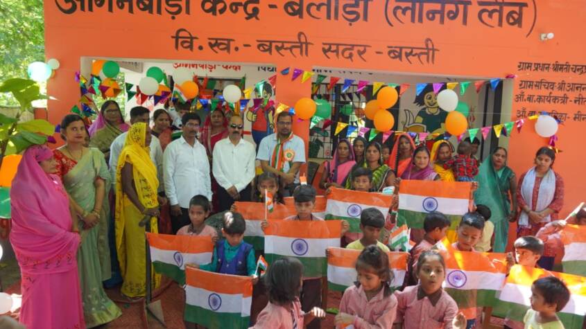 Lucknow, Aug 2025 : On the occasion of India’s 79th Independence Day, over 1.32 lakh council schools and Kasturba Gandhi Balika Vidyalayas (KGBVs) in Uttar Pradesh became vibrant centers of learning and patriotism. Instead of regular classroom lessons, the air was filled with the melodious tunes of the National Anthem and Vande Mataram. Nearly 1.48 crore little hands proudly held the tricolour, with eyes reflecting dreams of a bright future for India. Under the shade of the flag, children’s cheerful smiles lit up the day, while teachers sowed seeds of national pride in their young hearts.