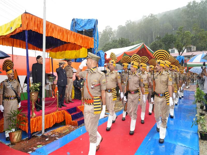 The State-level function was held at Sarkaghat in Mandi district, where Chief Minister Thakur Sukhvinder Singh Sukhu unfurled the National Flag, inspected the parade, and took the salute of from an impressive march past presented by contingents of Police, Home Guards, NCC, ITBP, Uttrakhand Police, 3rd India Reserve Battalion Pandoh, District Mandi Police, Traffic Police, Ex-Servicemen League and Home Guard Band amid heavy rains. Deputy Superintendent of Police Umeshwar Rana commanded the parade.
