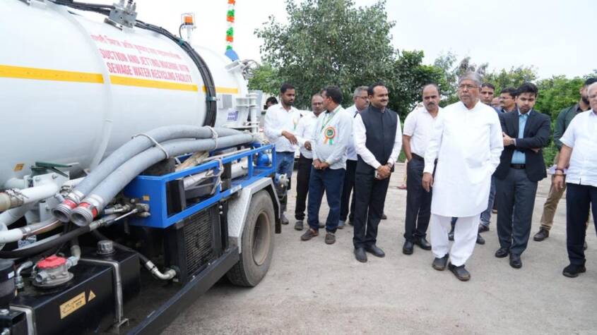 The Government will also provide two vehicles to the Sangli-Miraj-Kupwad Municipal Corporation for cleaning sewers, underground drains, and septic tanks, ensuring the safety of sanitation workers. One such vehicle has already been received and was launched by Guardian Minister Chandrakant Patil. The cost of manpower, fuel, and maintenance for this machine will be borne by the Government. The machine will operate in one shift (8 hours) daily, totaling 300 shifts per year. Funds for this machinery will be provided to the concerned local bodies from the state-level share of GST grants, stamp duty refunds, or Finance Commission funds, as informed by Executive Engineer Chidanand Kurne and Vinayak Jadhav.
