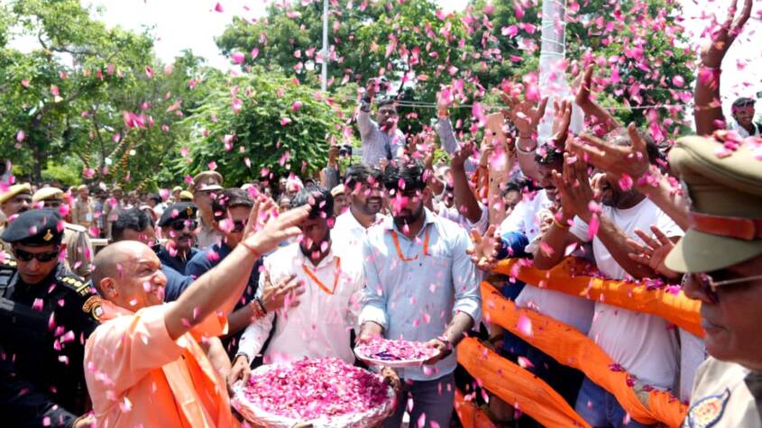 Highlighting the importance of cow protection, CM Yogi said that Gau Mata is among the revered symbols of Sanatan Dharma. His government, he said, is working to safeguard stray cattle and provides ₹1,500 per month to farmers engaged in cow rearing. Over 1.6 million cattle are currently under protection. He urged people to beware of divisive tendencies based on caste, region, or language, and emphasized the duty to respect soldiers guarding India’s borders while strengthening social unity. “As long as the flag of Sanatan Dharma guides the world, the spirit of universal brotherhood, peace, and harmony will remain,” he said.