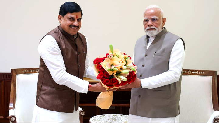 Prime Minister Shri Narendra Modi met by Chief Minister Dr. Mohan Yadav at Parliament House in New Delhi on Monday. CM Dr. Yadav invited Prime Minister Shri Modi to visit Madhya Pradesh. CM Dr. Yadav requested PM Shri Modi to inaugurate the upcoming Farmers’ Conference in the state and launch the Bhopal Metro train service. CM Dr. Yadav also presented a boquet to PM Shri Modi.