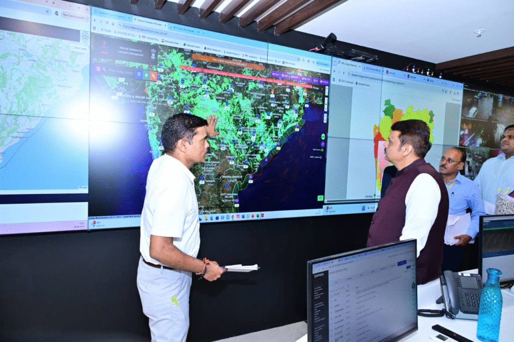 Mumbai, Aug 2025 : Chief Minister Devendra Fadnavis today reviewed the rainfall situation across Maharashtra at the State Disaster Management Cell in Mantralaya.