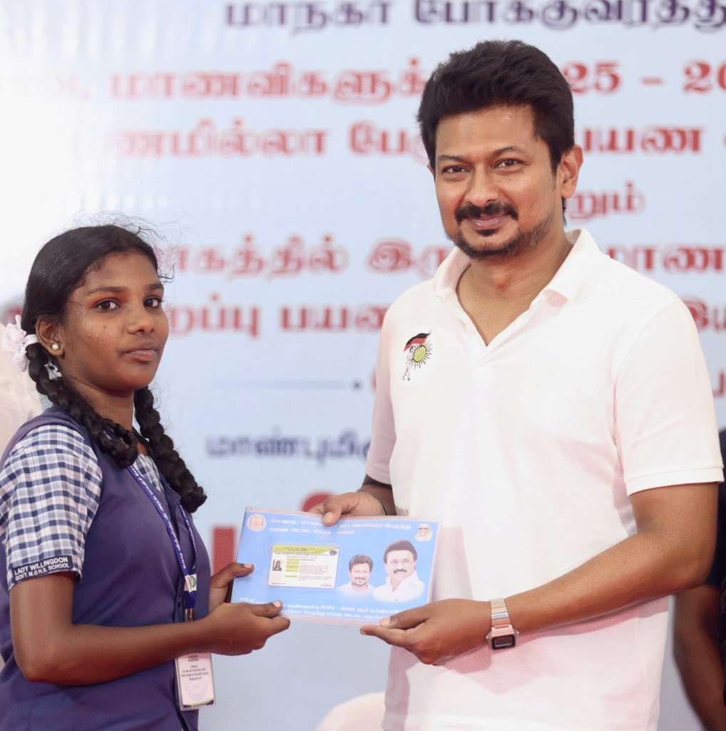 Deputy Chief Minister Udhayanidhi Stalin flagged off the first special student bus from Lady Willingdon Higher Secondary School, Triplicane, where he also inaugurated the distribution of free bus passes to students.