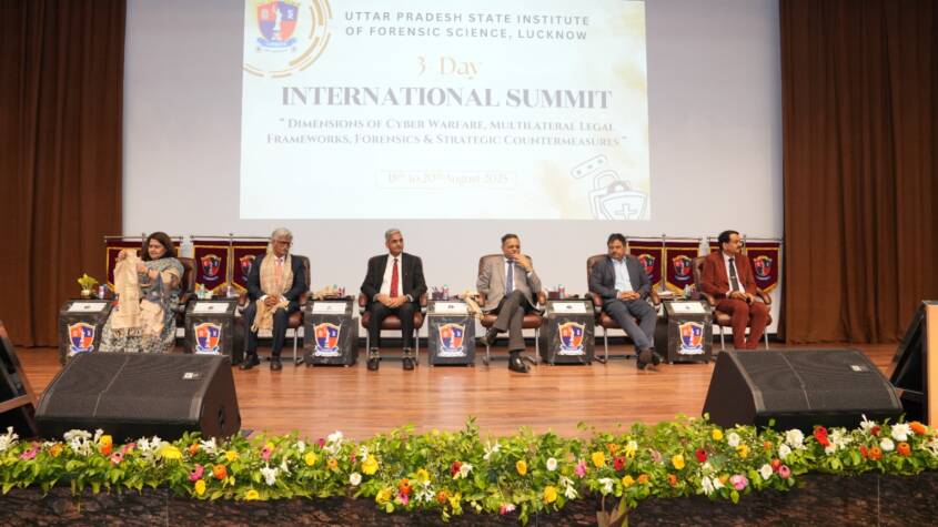 Lucknow, Aug 2025 – The three-day International Summit held at the Uttar Pradesh State Institute of Forensic Science (UPSIFS) in Lucknow has concluded successfully. The Chief Guest, Justice Rajesh Singh Chauhan, and Guest of Honor, Justice Rajiv Singh, shared their insights on this occasion. Prominent figures such as Dr. Porvi Pokhriyal, Director of NFSU Delhi, Dr. Amar Pal Singh, VC of RMLNLU, and Mr. Brijesh Singh, IPS, Maharashtra, also participated in the event.