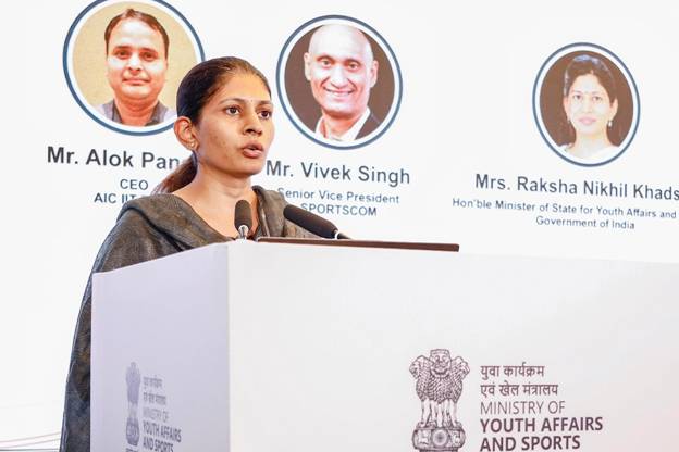 Aug 2025 : Smt. Raksha Nikhil Khadse, Minister of State for Youth Affairs & Sports, inaugurated the ‘Giving Wings to Dreams Conclave 2025’ at the Shangri-La Eros Hotel in New Delhi today. The event organized by SPORTSCOM was conceived as a platform where innovation meets opportunity, with the shared goal of making India a ‘Sporting Superpower’. It brought together key stakeholders to discuss the future of the Indian sports ecosystem, focusing on investment, sports science, manufacturing, and the scaling of sports startups. The conclave marked a new chapter in fostering an ecosystem that prioritizes transparent governance, invests in grassroots talent, and leverages public-private partnerships.