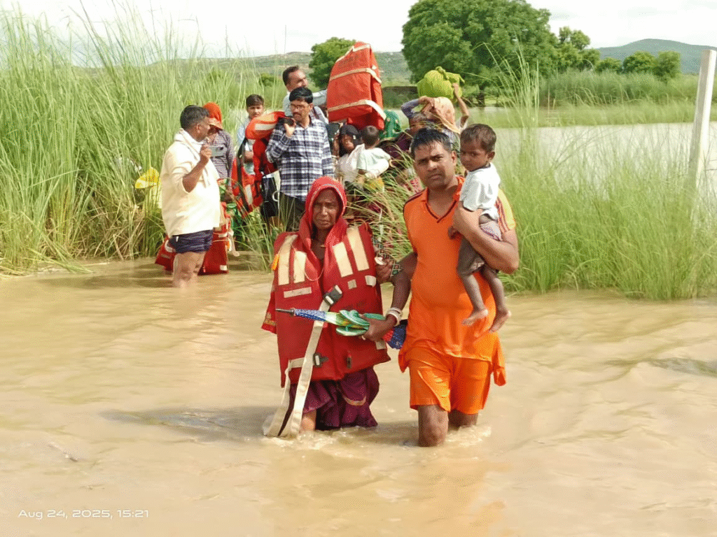 Jaipur, Aug 2025 Following last week’s heavy rainfall in Sawai Madhopur district, which caused rivers, streams, and ponds to overflow leading to waterlogging and localized flooding, the situation is now rapidly returning to normal. While some farmlands and residential areas remain waterlogged, officials confirmed that the overall situation is fully under control. Relief teams remain on high alert to provide assistance wherever needed.