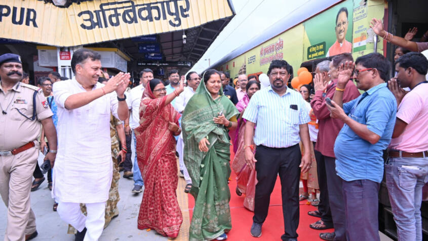 Raipur, Aug 2025 : Under the “Ram Lalla Darshan Yojana” of the Chhattisgarh Government, a special train carrying devotees departed today from Ambikapur Railway Station for Ayodhya. Minister for Women & Child Development and Social Welfare, Smt. Laxmi Rajwade, flagged off the train and extended her best wishes to all devotees.