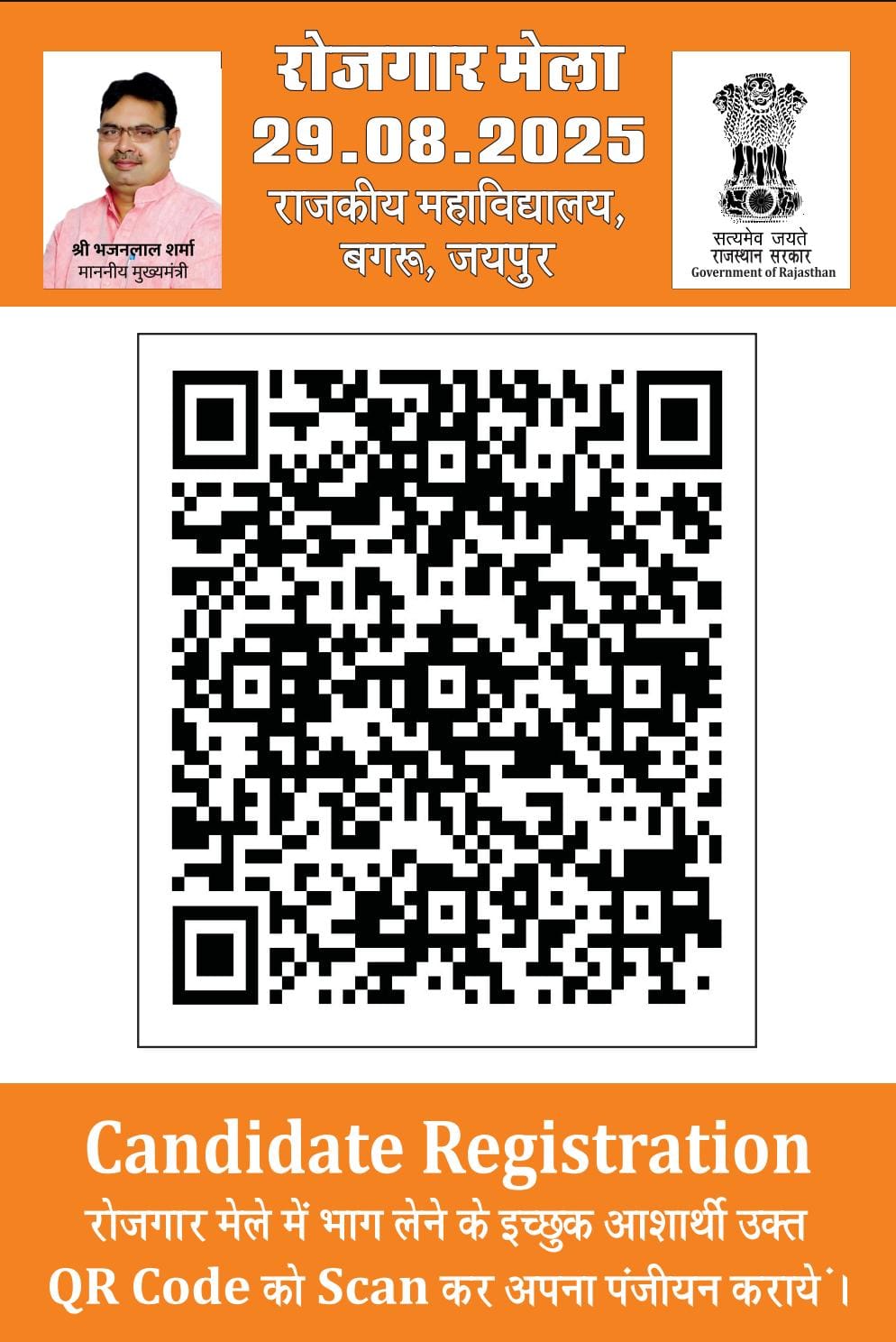 Deputy Director of the Employment Office, Mrs. Navrekha, informed that various government departments will also provide information to aspirants about departmental schemes during the camp. For registration, a QR code has been issued, which is attached to this press release.