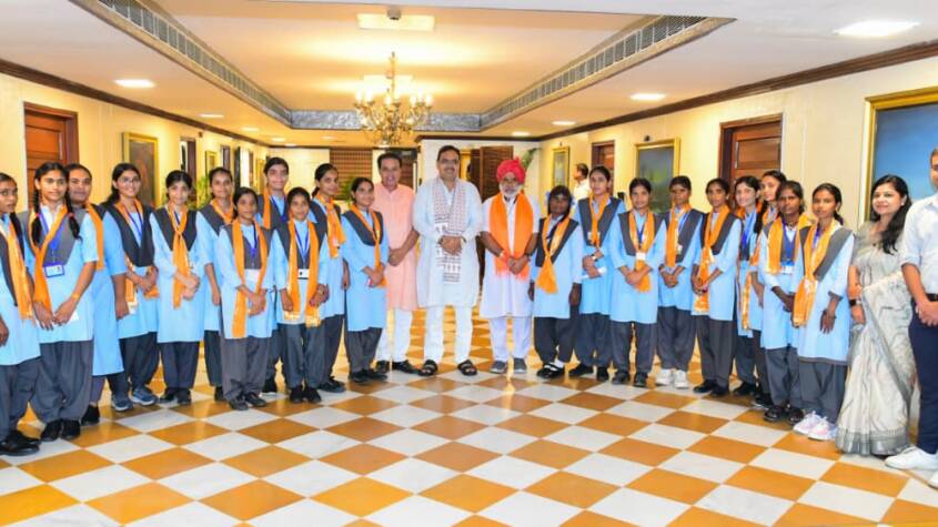 Jaipur, Aug 2025 . On Wednesday, talented girl students from Udaipur met Chief Minister Shri Bhajanlal Sharma at the Chief Minister’s Office, accompanied by MLA Shri Phool Singh Meena. The Chief Minister extended his best wishes to all the meritorious daughters for a bright future.