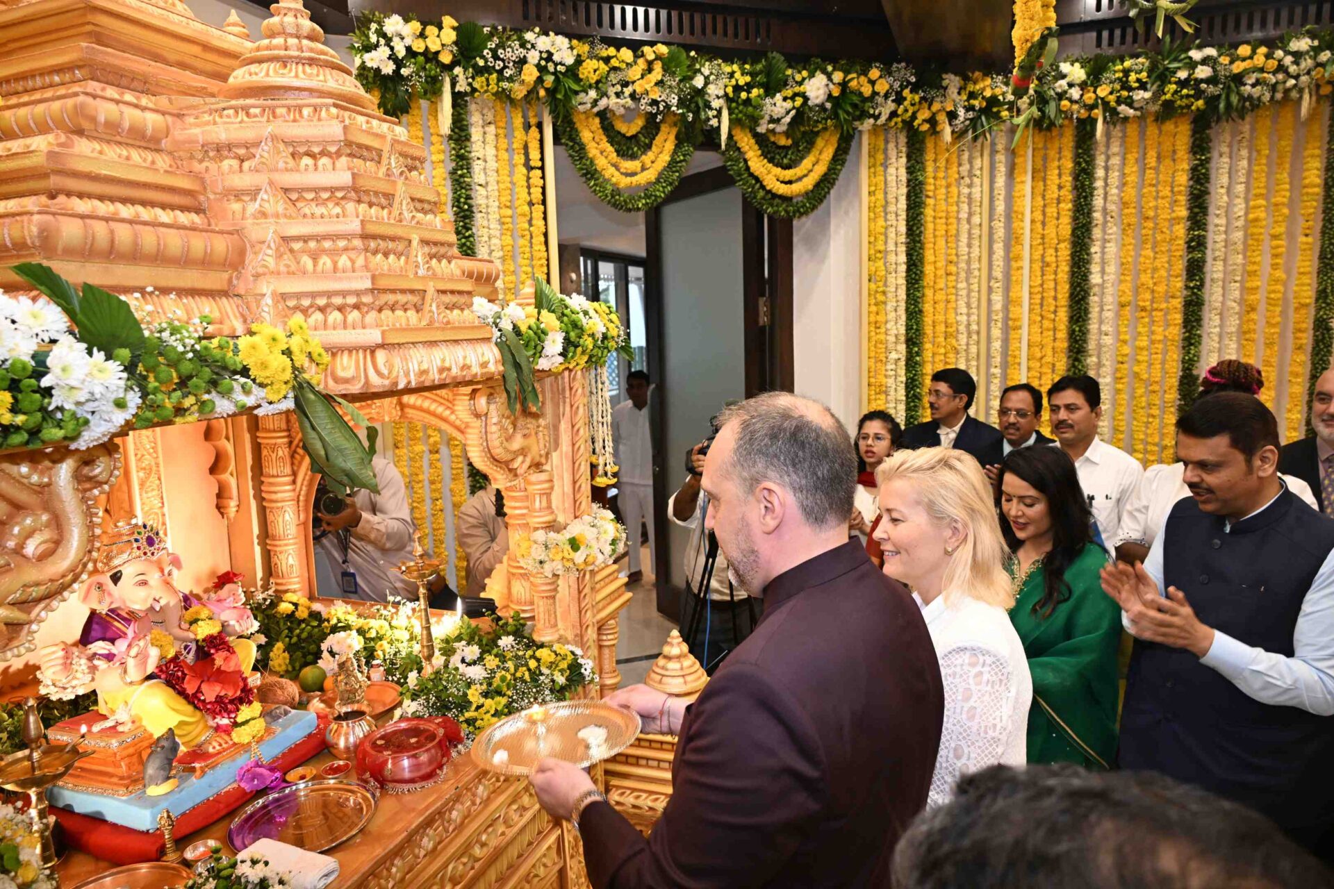 Chief Minister Fadnavis and his wife Amruta Fadnavis warmly welcomed all the Consuls General. Around 35 Consuls General, along with their families, participated in the aarti of Lord Ganapati alongside the Chief Minister.