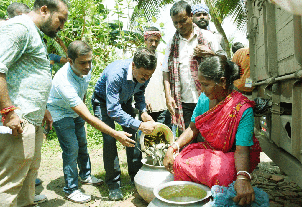 This program was conceived and led by Dr. B. K. Das, Director of the institute. Scientific guidance formed a key pillar of the event. ICAR-CIFRI Scientists, Dr. P. K. Parida, Dr. D. Bhakta, Dr. Lianthuamluaia, and Dr. S. Kumari, educated villagers on modern fish farming techniques. Sessions on pond management, feed optimisation, and fish health bridged the gap between traditional practices and scientific knowledge. These interactions addressed practical challenges, building confidence among first-time fish farmers and motivating them toward sustained engagement.