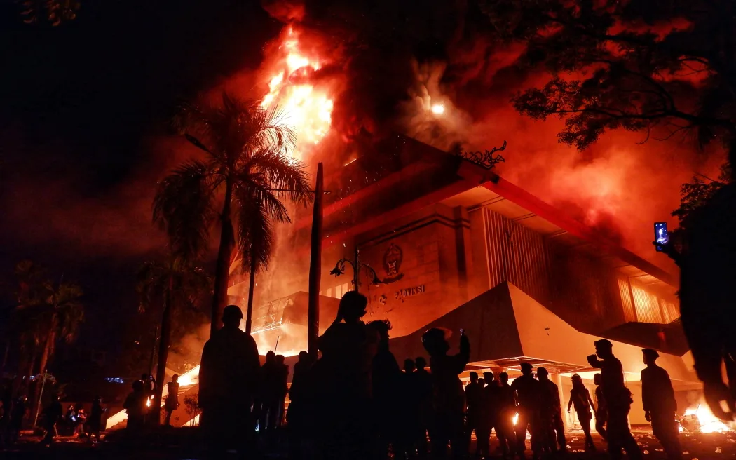 Protests in Makassar, South Sulawesi, spiraled into violence late Friday night as demonstrators clashed with authorities outside both the provincial and city council buildings. Vehicles were set ablaze, while protesters hurled rocks and Molotov cocktails. By early Saturday, both council buildings were engulfed in flames.