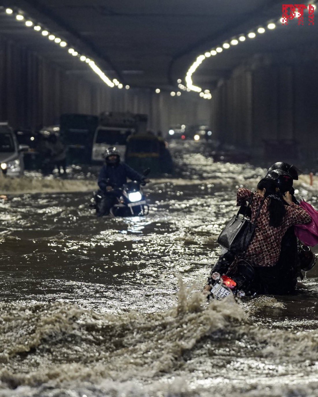AAP leaders mocked the situation across the capital: in South Delhi, they said the situation was “like Venice”; in Sangam Vihar, water levels were above the knees with vehicles stuck, prompting AAP to warn residents to carry life jackets; and on MB Road, waterlogging turned it into “MB River” with three to four feet of water.