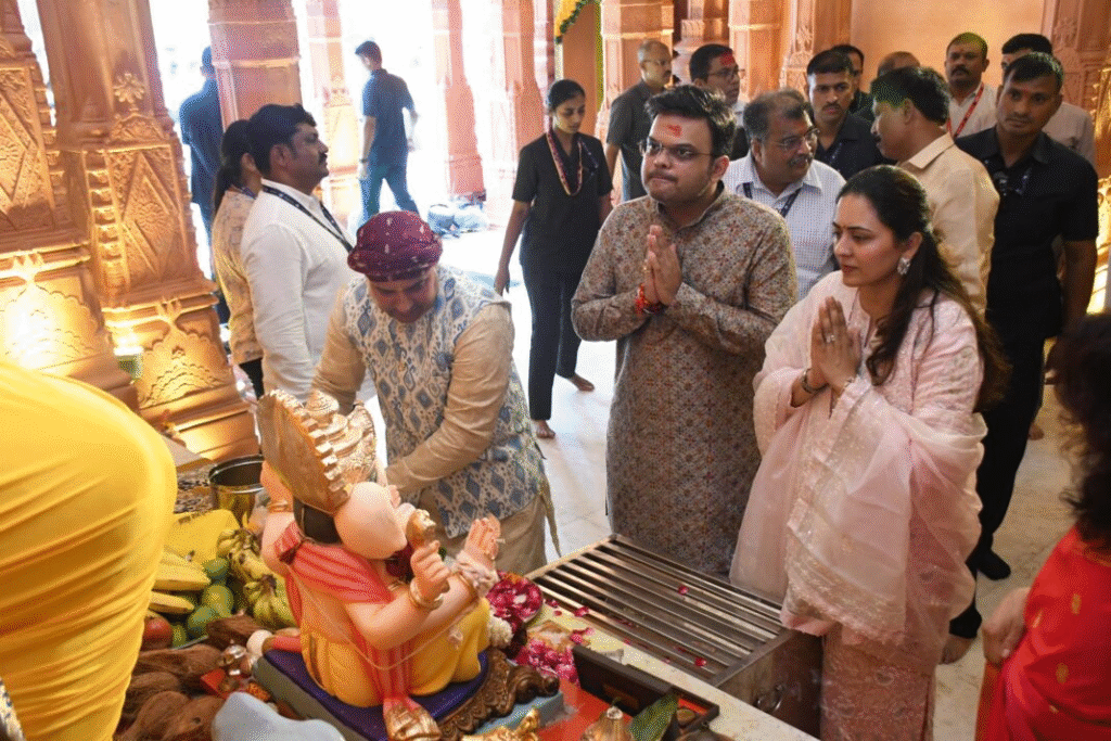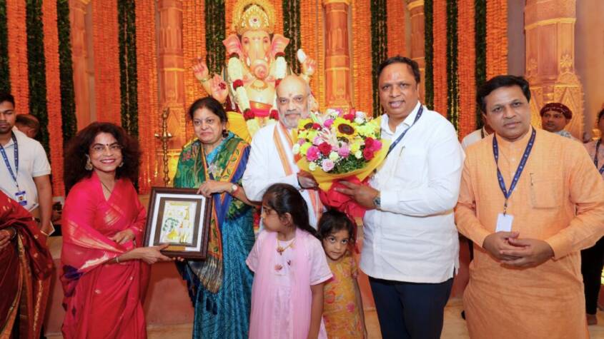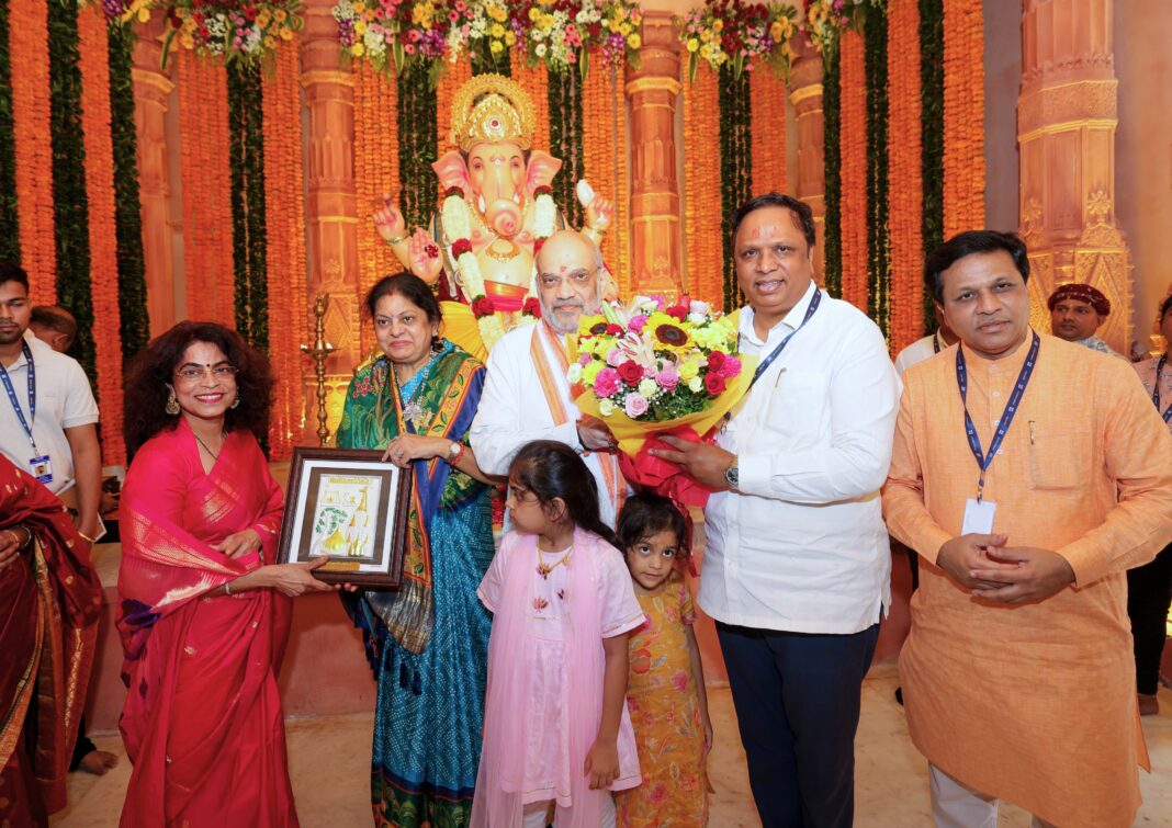 Mumbai, Aug 2025 : Union Home Minister Amit Shah, along with his family, visited the Ganesh idol of the Bandra (West) Public Ganeshotsav Mandal and performed prayers.