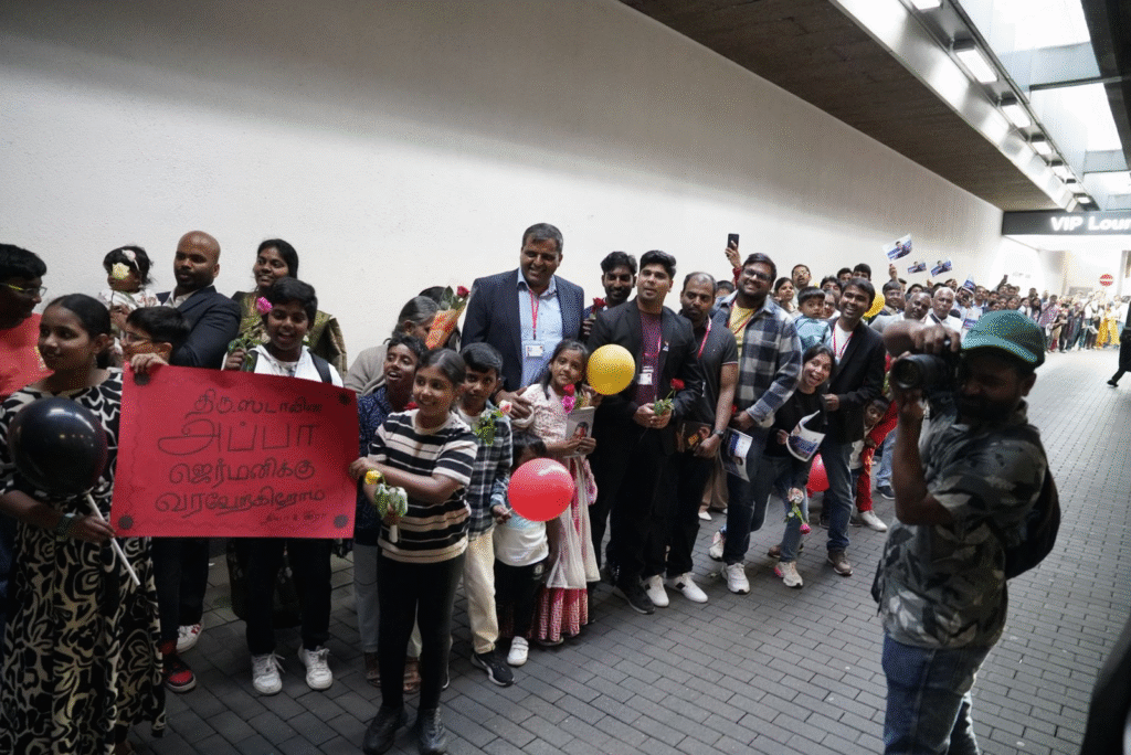 At Berlin airport, expatriate Tamils greeted the Chief Minister with flags, banners, and slogans celebrating his leadership. Sharing the moment on social media platform X, Stalin wrote: “Hello, Germany! My Tamil family here welcomed me with warmth and love. I have come to showcase Tamil Nadu’s strengths and to attract investments that will secure a brighter future for our state.”