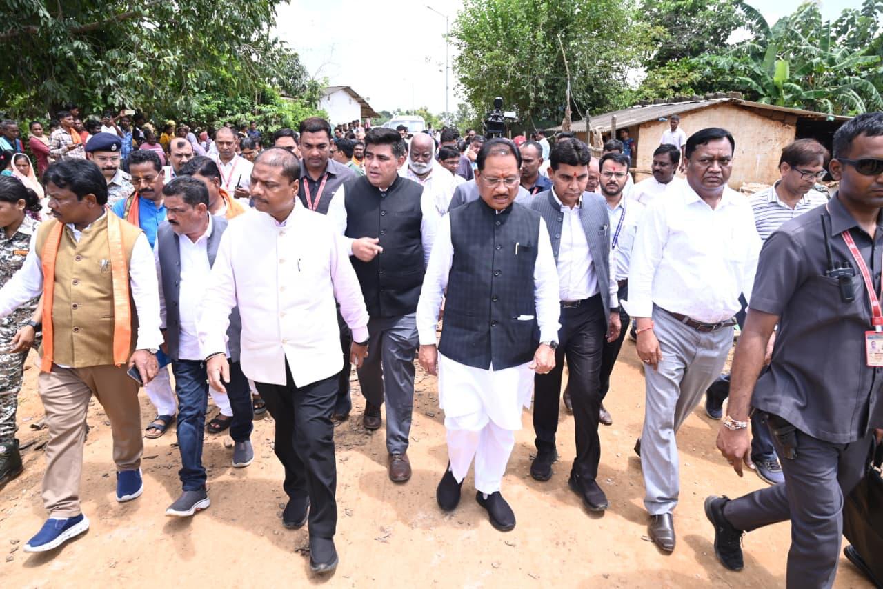 At Churitikar Para in Dantewada, Mr. Sai visited a temporary relief camp where he interacted with affected families and listened to their concerns. He assured them that the government stands firmly with every victim. Directing the administration, he said that proper arrangements for food, clean drinking water, and safe shelter must be consistently maintained in all camps. He further instructed that immediate relief should reach all affected people and that rehabilitation work must be carried out on a priority basis without delay.