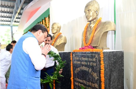 Sept 2025 : Chief Minister Pushkar Singh Dhami on Monday participated in a tribute program held in Khatima in memory of those who sacrificed their lives during the Uttarakhand statehood movement. On this occasion, he offered floral tributes to the martyrs and also honored their dependents and other statehood activists.