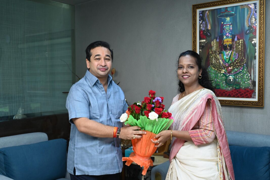 Sindhudurgnagari, Sept 2025 : Newly appointed District Collector Tripti Dhodmise today paid a formal courtesy visit to the district’s Guardian Minister, Nitesh Rane. During the meeting, discussions were held on pending issues in the district, ongoing projects, public facilities, and upcoming development plans.