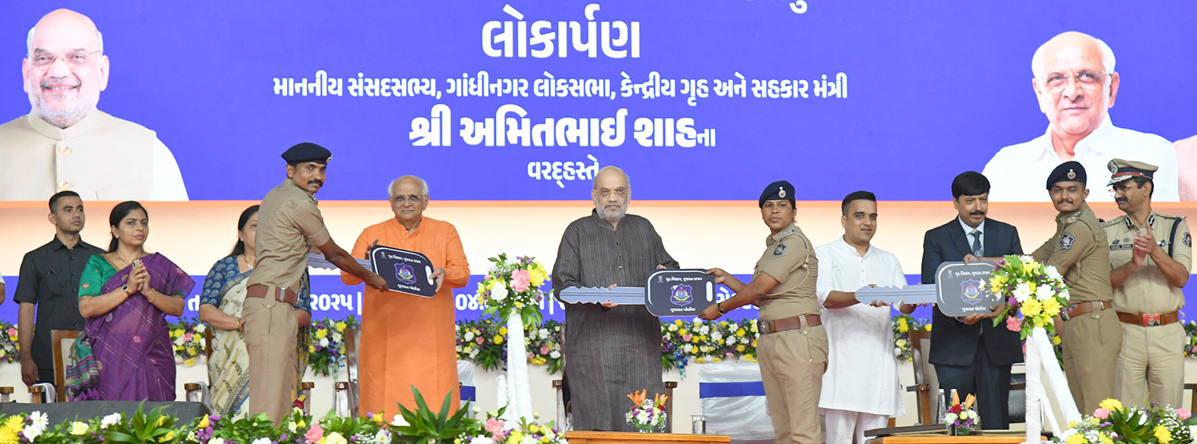 In line with the directives of the Union Ministry of Home Affairs, Union Home and Cooperation Minister and Member of Parliament from Gandhinagar, Shri Amit Shah, along with Chief Minister Shri Bhupendra Patel and Minister of State for Home Shri Harsh Sanghavi, inaugurated several safety and security projects in Gandhinagar today.