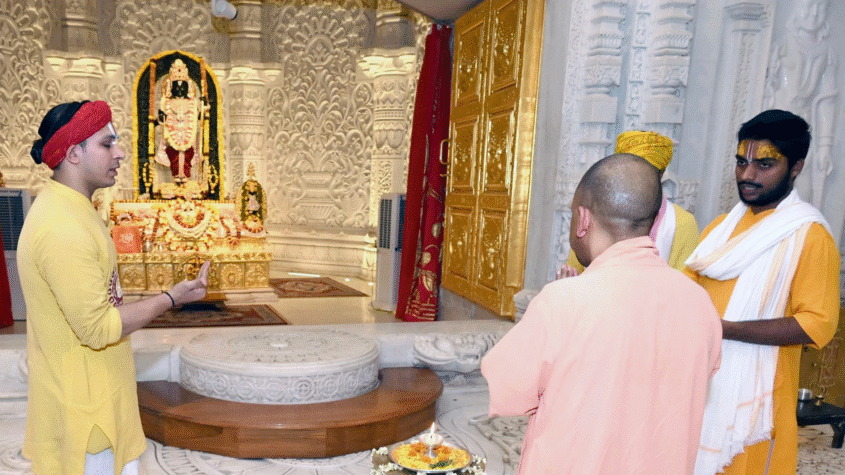 Ayodhya, Sept 2025 : Chief Minister Yogi Adityanath reached Ayodhya on Wednesday for a one-day visit. During the trip, he first offered prayers at Sankat Mochan Hanumangarhi temple, seeking peace and prosperity for the state. After this, CM Yogi paid obeisance at the sanctum of Shri Ram Lalla, performed aarti, and greeted the public on his way out. He also circumambulated the temple premises, reviewed the progress of Ram Mandir construction, and offered prayers at the Ram Darbar.