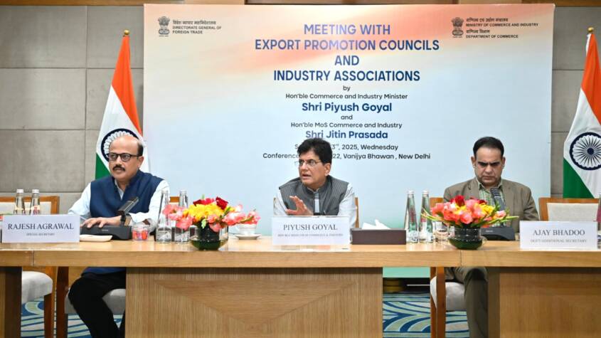 Sept 2025 : Union Minister of Commerce and Industry, Shri Piyush Goyal, chaired a meeting with Export Promotion Councils (EPCs) and Industry Associations today to address rising global tariffs, explore solutions, and chart a path forward amid shifting trade dynamics. The meeting saw the participation of representatives of EPCs and Industry Associations, senior officials from the Department of Commerce, and the Directorate General of Foreign Trade (DGFT).