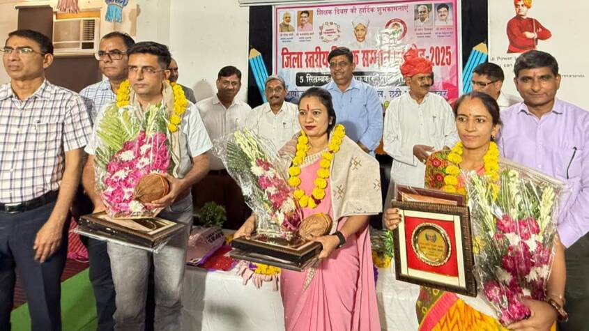 During the district-level ceremony, Shri Sharma honored teachers for outstanding work in education. Additionally, at the state-level ceremony at Birla Auditorium, Jaipur, teachers from the district, Shri Chhaganlal Sharma and Shri Madan Lal Yadav, were recognized for their exceptional contributions.