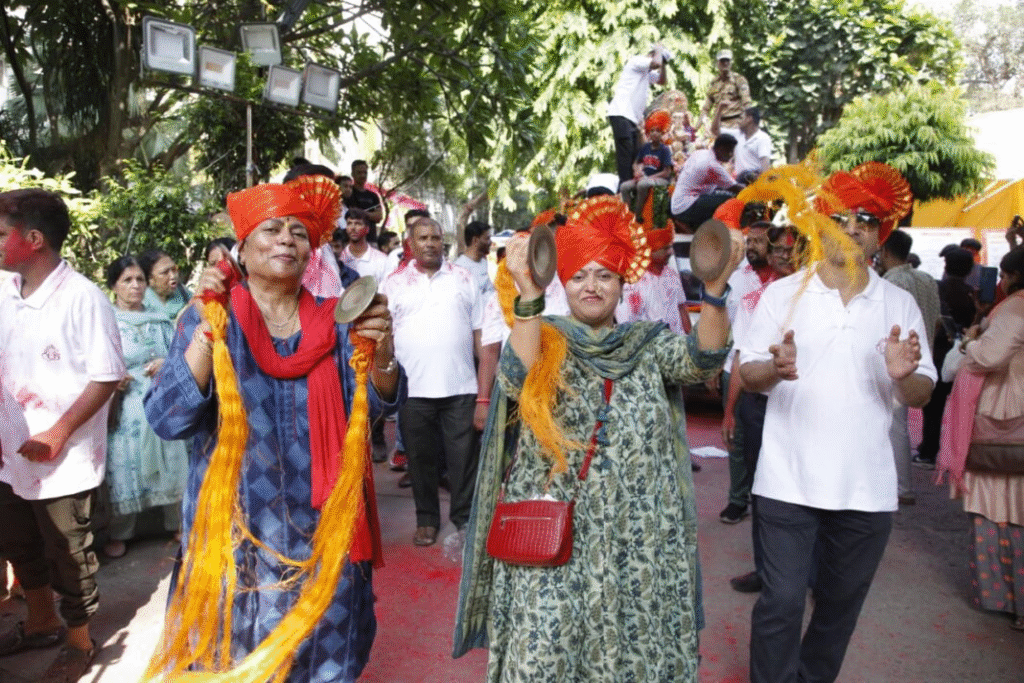 The immersion day procession, accompanied by the beats of Kolhapur’s Siddheshwar troupe and the rhythms of lezim and zanj, spread festive Marathi energy across Delhi’s streets. Eco-friendly demonstrations added a meaningful social message to the celebrations.