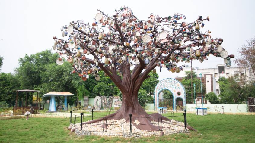 A team of six artists and 120 artisans spent months creating nearly 100 unique artworks for the park, including 28 large installations. These striking pieces, crafted from broken pitchers, cups, kettles, and other utensils, include giant replicas of everyday ceramic items, designed and decorated in vibrant, eye-catching styles. The park offers attractions for visitors of all age groups, with selfie points, a café, and beautifully landscaped greenery designed with a horticultural touch.