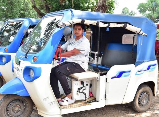 Saraswati Driving E-Rickshaw to Help Passengers Reach Their Destination