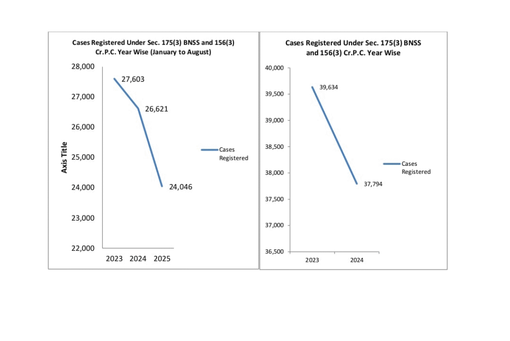 According to data from the Crime Branch at Police Headquarters, under CRPC Section 156(3) (now Section 175(3) of BNSS), a total of 39,634 cases were registered through court complaints in 2023. This figure dropped to 37,794 cases in 2024 — a reduction of 1,840 cases (4.64%) in just one year.