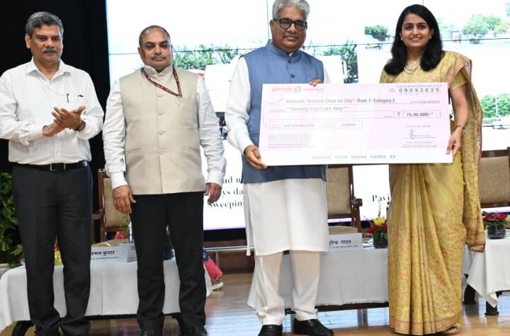 In the Clean Air Survey 2025, Amravati scored a perfect 200 out of 200 points, emerging as the best-performing city in the 3 to 10 lakh population category. The survey was conducted under the National Clean Air Programme (NCAP). The prize and trophy were presented to Amravati Municipal Commissioner Saumya Sharma Chandak by Union Environment Minister Bhupender Yadav and Minister of State Kirti Vardhan Singh during a grand ceremony in New Delhi.