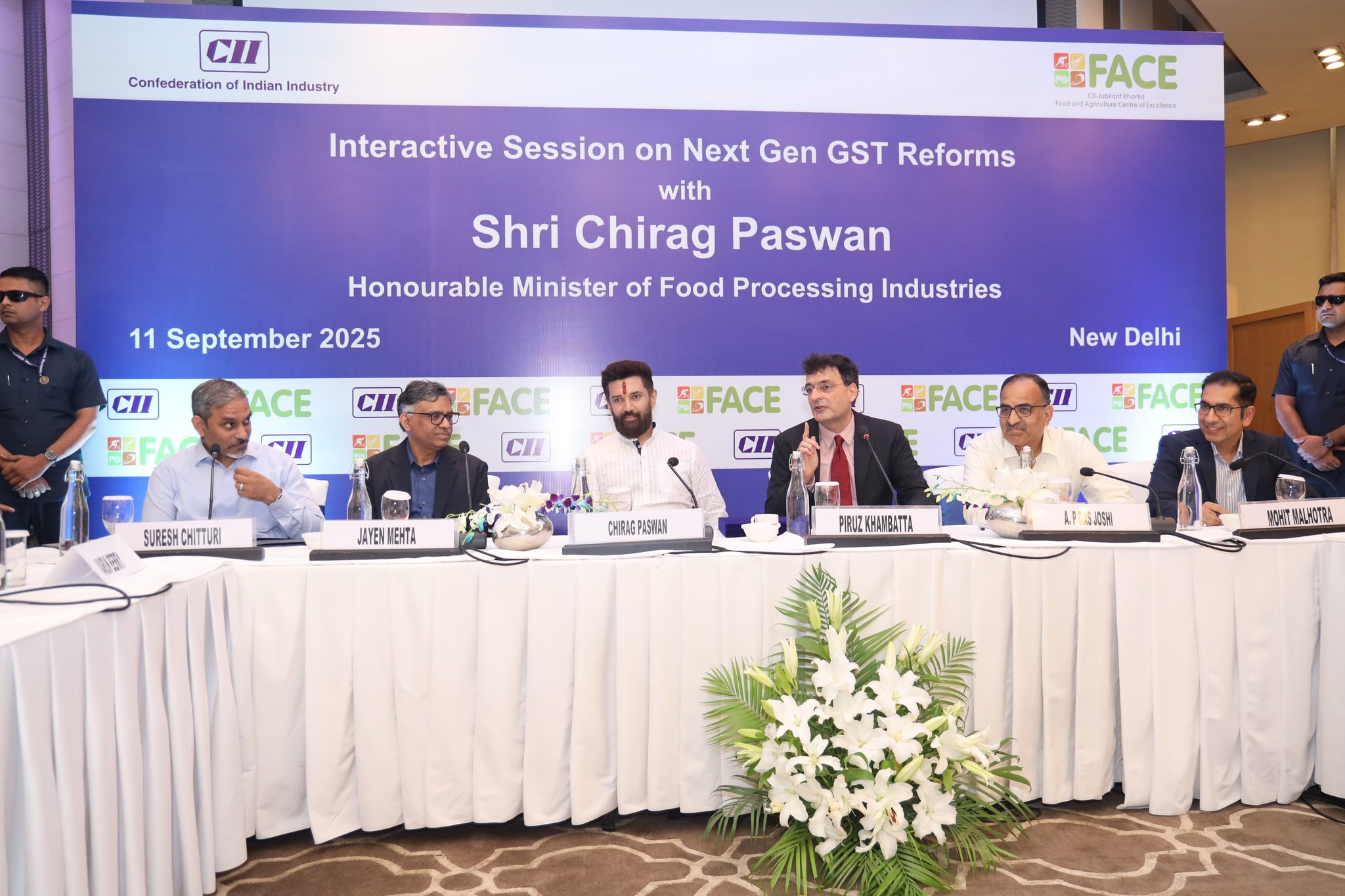 The Ministry of Food Processing Industries (MoFPI), in collaboration with the Confederation of Indian Industry (CII), today convened an exclusive interaction with leading CEOs from the food processing sector. The roundtable, chaired by Shri Chirag Paswan, Minister of Food Processing Industries, provided an important platform for open dialogue between government and industry stakeholders. The interaction commenced with a vote of thanks from industry representatives to the Prime Minister, Finance Minister, and Food Processing Minister for spearheading the landmark GST reforms.
