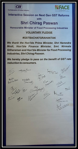 Business leaders from companies including Amul, Britannia, Coca-Cola, Dabur, DS Group, ITC, PepsiCo, Rasna, Mars, Orkla Foods, Mondelez, Bisleri, Cremica Foods, Mrs. Bector, Srinivasa Farms, Hyfun Foods among others, voluntarily pledged to pass on the benefits of GST rate reductions to consumers. They also committed to sensitising smaller enterprises across the ecosystem, ensuring farmers receive better value, and advancing the goals of import substitution and Make in India. Industry captains noted that the reforms would not only lower prices but also stimulate demand, ultimately driving growth across the sector.