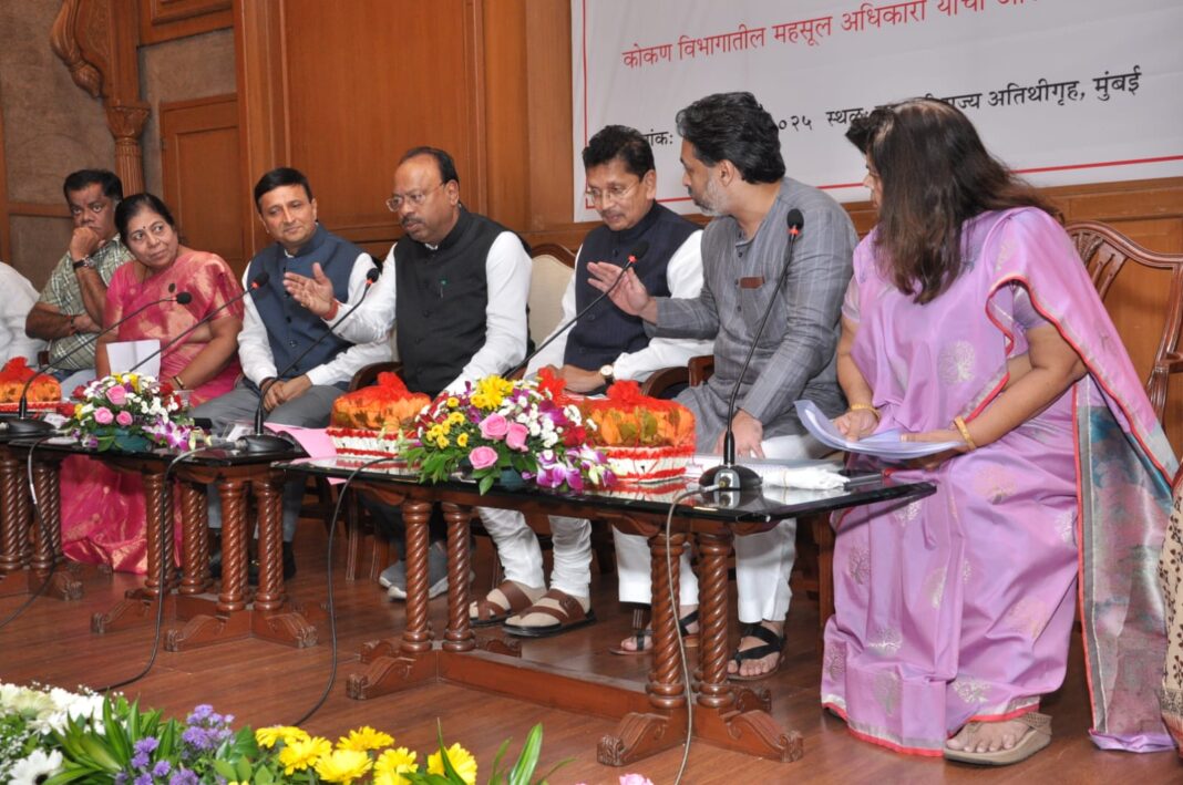 A review meeting of the Konkan Revenue Department’s work was held at Sahyadri Guest House under the chairmanship of Minister Bawankule. Present at the meeting were Konkan Divisional Commissioner Dr. Vijay Suryawanshi, MLAs from the division including Deepak Kesarkar, Nilesh Rane, Vikrant Patil, Kiran Samant, Bhaskar Jadhav, Abu Azmi, Bhai Jagtap, Rajan Naik, Anant Nar, Murji Patel, Haroon Khan, Tukaram Kate, Manisha Chaudhary, Chitra Wagh, Vidya Thakur, Sulabha Gaikwad, along with District Collectors, Sub-Divisional Officers, and other officials.