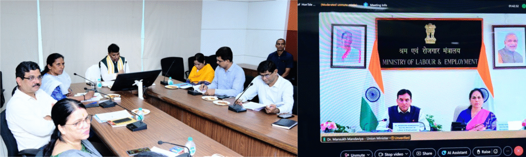 Bhubaneswar Sept 2025 : A high-level national consultation meeting was held today under the chairmanship of Union Labour and Employment Minister Dr. Mansukh Mandaviya, focusing on key labour reforms aimed at ensuring dignity, security, and opportunity for the nation’s workforce. The meeting saw active participation from multiple states, including Odisha, whose delegation was led by Labour and ESI Minister Sri Ganesh Ram Singhkhuntia, along with Principal Secretary Smt. Chithra Arumugam and Labour Commissioner Sri Indramani Tripathy.