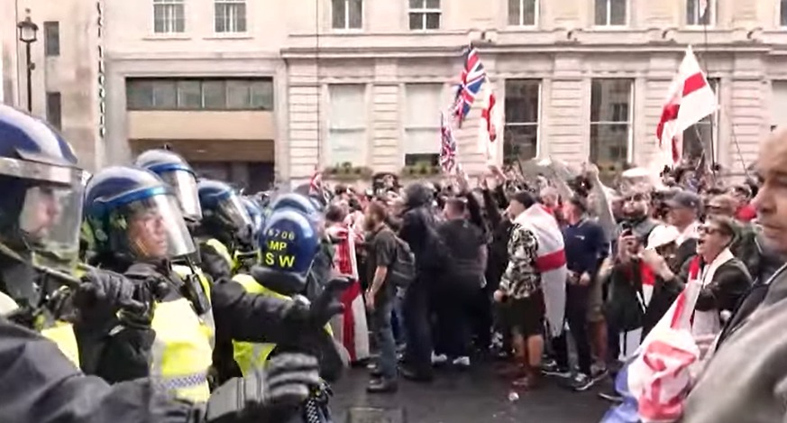“By 16:50, the ‘Unite the Kingdom’ protest was so large it was difficult to contain within Whitehall,” the Metropolitan Police wrote on X (formerly Twitter). “Protesters left the designated Victoria Embankment route and tried to gain access to Whitehall from multiple directions. When officers moved to stop them, they faced uncontrollable violence.”