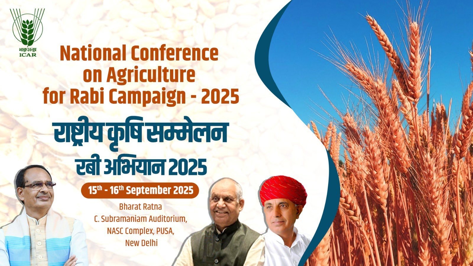 Sept 2025 : Union Ministry of Agriculture and Farmers’ Welfare is organising the ‘National Agriculture Conference – Rabi Abhiyan 2025’ on September 15–16, 2025, at Bharat Ratna C. Subramaniam Auditorium, Pusa Campus, New Delhi. This two-day national conference will provide a common platform for agriculture experts, scientists, policymakers and senior representatives of state governments from across the country, where detailed discussions will be held on the preparations, production targets, and strategies for the Rabi sowing season 2025–26.